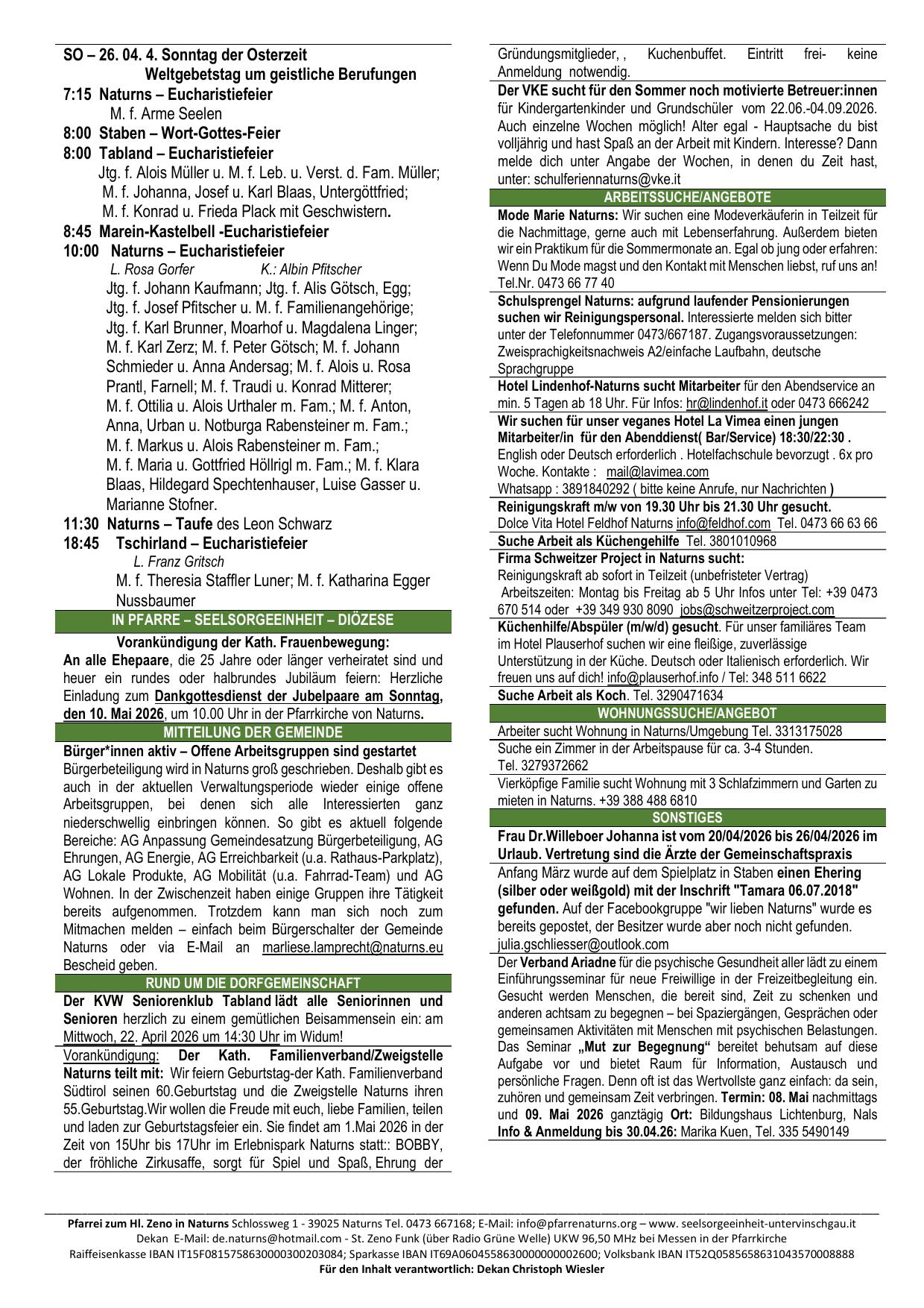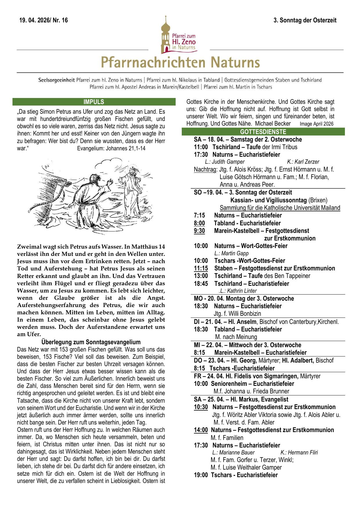 → Pfarrnachrichten 19.04.2026 Nr. 16
